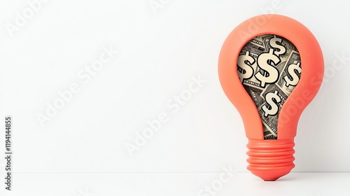 A lightbulb filled with dollar signs symbolizes innovative financial ideas and opportunities for wealth creation.