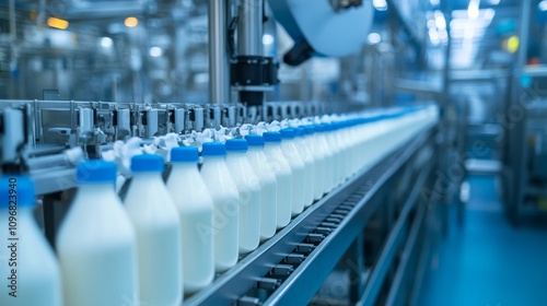 line, milk, bottle, factory, white, blue, conveyer, industrial, production, belt, manufacture, equipment, technology, plant, automation, machine, business, food, plastic, beverage, machinery, process, dairy, drink, steel, clean, liquid, container, work, automatic, package, modern, yogurt, processing, stainless, assembly, system, storage, metal, glasses, object, fill, farm, conveyer, water, packing, engineering, background, natural