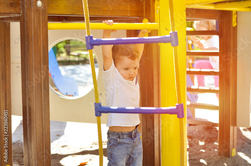sport, active, playground, pull, hang, strong, jean, white shirt, happiness, joy, fun, boy, children, cute, toddler, children, play, happy, young, beautiful, lifestyle, little, childhood, activity, playful, day, smile, white, yellow, pleasure, walk, pastime, entertain, extreme, safety, upbringing, growing up, independent, park, summer, spring, ride, background, outside