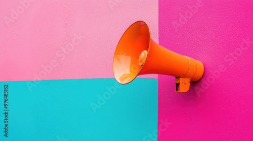megaphone, orange, lively, pink, blue, idea, expressing, volume, clarity, communication, announce, loudspeaker, sound, attention, celebration, event, marketing, promotional, broadcasting, device, media, speech, announcement, contrast, concept, expression, creativity, design, colours, call, message, dynamic, public, influence, project, rally, representation, tool, loud, speaking, oratory, visibility, showcase, impact