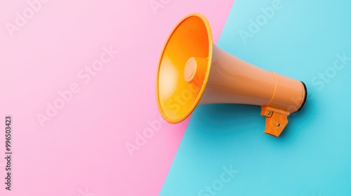 A lively orange megaphone set against a pink and blue backdrop ideal for expressing ideas with volume and clarity