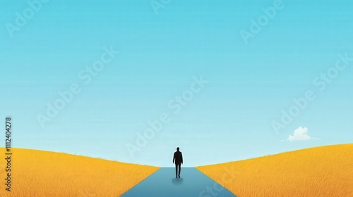 lone, figure, walking, down, road, empty, field, side, business, man, person, concept, success, way, businessman, career, opportunity, solution, background, challenge, illustration, path, sky, symbol, direction, design, future, freedom, manager, leadership, vector, job, travel, achievement, decision, journey, motivation, art, idea, abstract, professional, landscape, nature, ambition, line