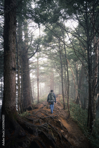 A lone hiker on the way up to Mount Tsubakuro