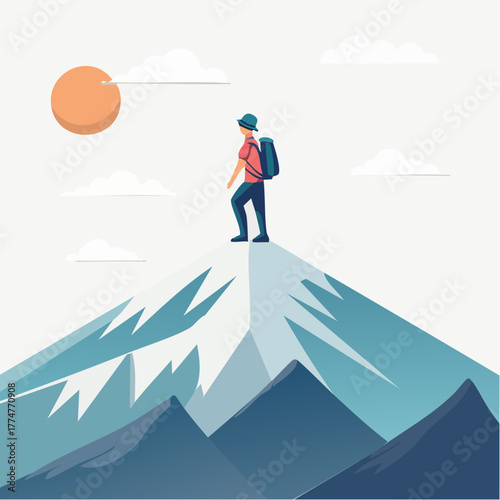 hiker, person, man, traveler, backpack, backpack, mountain, peak, summit, top, range, snow, ice, rock, cliff, sun, sky, cloud, nature, landscape, wilderness, outdoors, view, scenery, altitude, height, hiking, trekking, climbing, walking, exploring, adventure, journey, travel, tour tourism, expedition, exploration, achievement, success, goal, ambition, freedom, solitude, challenge, perseverance, endurance, strength, victory, accomplishment