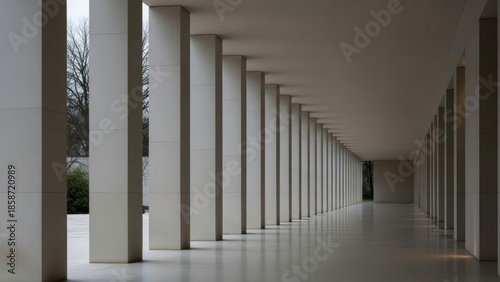 corridor, modern, column, architecture, interior, design, sleek, floor, white, clean, minimalist, business, corporate, office, building, structure, hallway, passageway, perspective, depth, interior design, commercial, space, urban, city, contemporary, industrial, engineering, construction