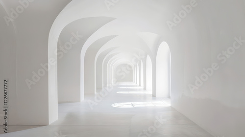 hallway, white, arch, sense, perspective, window, long, series, depth, viewer, eye, length, natural, light, streaming, soft, glow, wall, floor, end, continuity, flow, space, people, present, natural light, right side, whitewall