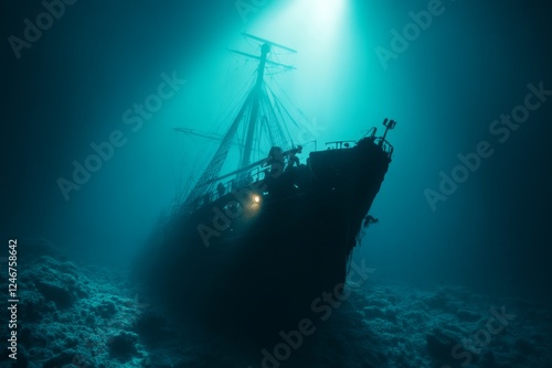 A lost shipwreck being explored by underwater archaeologists deep in the ocean