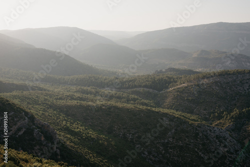 view, scenic, scenery, vale, landscape, panorama, countryside, rural, canyon, mountain, mountain, hill, stone, rocky, summer, spain, europa, forest, tree, tree, yellow, brown, orange, green, blue, spruce, sky, cloud, tour tourism, travel, beautiful, background, nature, mediterranean, rock, natural, panoramic, park, range, cliff, evening, sunset, fog, cloud, country, sun, sunlight, sunrise, morning