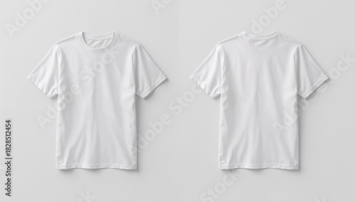 A lucid and realistic blank white t-shirt mockup showing both the front and back view, an isolated template for apparel design presentation
