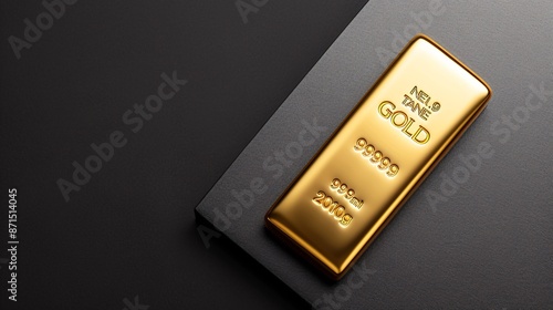 lustrous, gold, bar, sit, right, side, image, contrasting, empty, black, grey, background, radiant, shine, rich, colours, are, minimalist, conveying, sense, luxury, value, simplicity, prominence, allure
