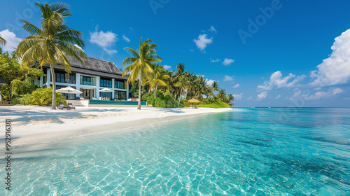 luxurious, beachfront, resort, palm tree, crystal-clear, water, tropical, paradise, serene, upscale, ocean, pristine, elegant, scenic, get-away, vibrant, sandy, exclusive, calm, lush, private, high-end, relaxation, idylli, coastal, turquoise, dreamy
