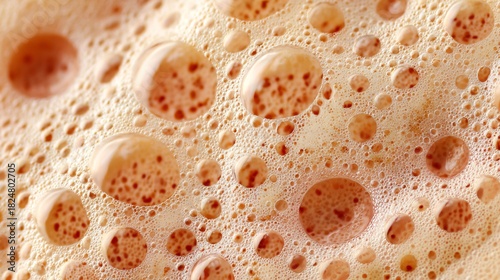 A macro of milkshake foam with peach pulp specks, creamy gradient tones