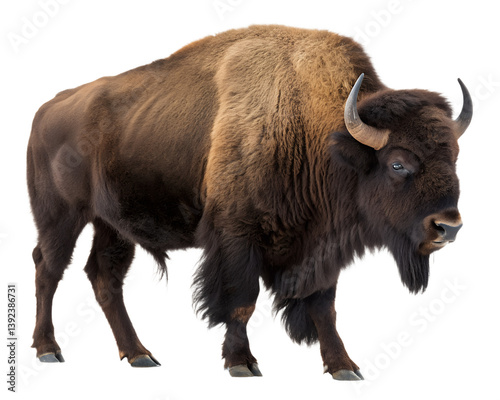 bison, animal, mammal, wildlife, nature, buffalo, fur, brown, isolated, background, horn, portrait, standing, beast, herbivore, wild, american, large, strong, powerful, fauna, zoo, mammalian, outdoors, big, cattle, ungulate, hoof, closeup, profile, bearded, shaggy, creature, wilderness, bovine, species, image, stock, photo, studio, view, transparent, cut-out, posing, looking, stand, majestically