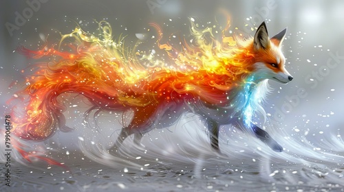 majestic, fire, fox, blue, accent, run, snow, winter, ice, cold, swift, gift, high-coloured, terrain, wood, render, design, soft, agile, wildlife, remote, nature, quest, creature, movement, dash, sleek, charming, strong, frosty
