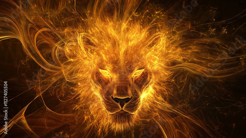 A majestic lion's head for Leo, surrounded by a solar aura of golden flames radiating warmth and energy
