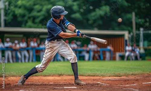 baseball, sport, famous, man, athlete, uniform, hitting, ball, game, team, bat, action, play, competition, sportsman, player, swing, field, helmet, blue, white, brown, leather, match, pitch, batter, strike, exercise, athletic, motion, physical, competitive, recreational, hobby, skilful, focused, concentration, perseverance, determination, ballpark, audience, spectator, fan, daylight, ai, generative, illustration