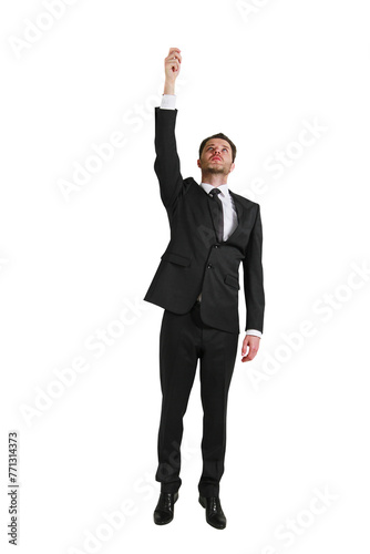 man, suit, reaching, isolated, white, background, transparent, layout, element, template, design, collage, clean, closeup, cut, upward, black, business, aspiration, goal, achievement, executive, professional, standing, male, formal, attire, corporate, ambition, success, smart, dress, motivation, gesture, growth, elegant, fashion, businessman, style, posing, clothing, confident, achieving, determination, inspired, workwear, concept