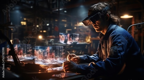 industrial, equipment, person, factory, man, technology, engineer, metal, workshop, working, safety, steel, occupation, skill, adult, male, manufacturing, computer, technician, innovation, indoor, reality, simulation, design, welder, virtual, business, construction, iron, machinery, display, metal industry, horizontal, tool, craft, machine, development, protection, production, hologram, future, goggles, science, photo, three-dimensional, welding