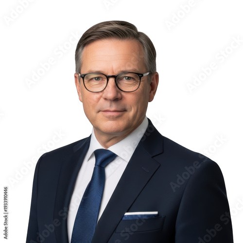 A man in a suit and tie smiles for his professional portrait photo isolated on transparent background