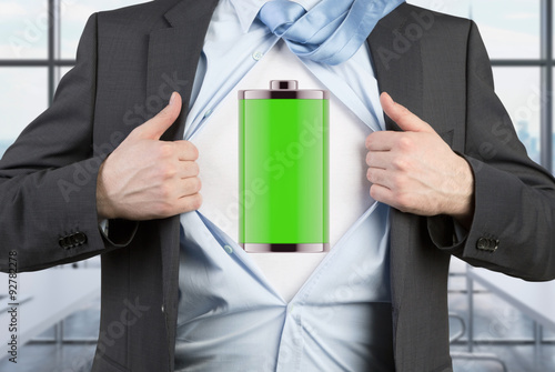 battery, businessman, charged, chest, energy, fully, go, green, icon, jacket, open, power, shirt, concept, ambition, enthusiasm, motivation, mobile phone, hand, torso, good, current, electrical, charge, full, environmentally friendly, efficient, aspiration, strategy, innovation, inspiration, achievement, leadership, business, office, professional, men at work, corporate, executive