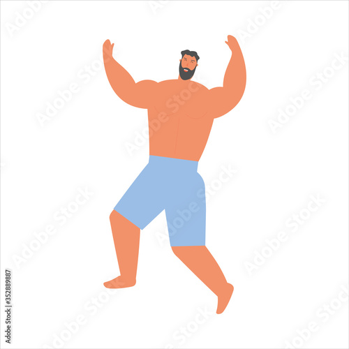 A man in a swimsuit is jumping with happiness. Cartoon vector illustration