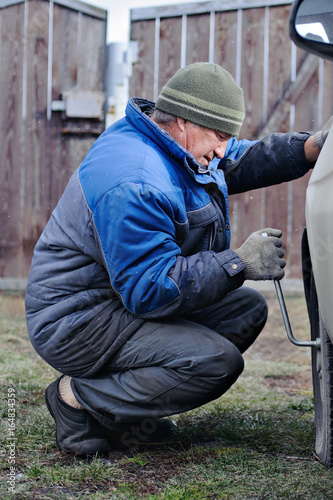 wheel, change, man, car, working, work, mechanic, vehicle, tire, automobile, auto, automotive, transportation, wrench, repair, men at work, service, workshop, rubber, person, technician, industry, male, blue, technology, hand, shift, shop, gear, clothes, tool, driver, expertise, transport, frost, people, adult, power, business, season, jack, clutch, arm, winter, mechanical, machinist, fitter, working man, tyre, labourer