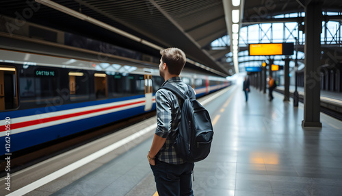 a, man, is, waiting, for, train, on, the, platform, young, guy, passenger, with, backpack, standing, people, station, woman, business, travel, subway, city, railway, person, aerodrome, walking, underground, crowd, urban, subway, transportation, speed, transport, boy, businessman, building, rail