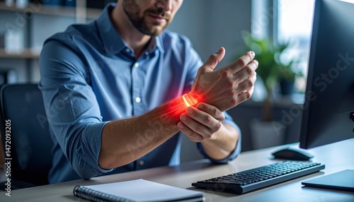 wrist, pain, fatigue, office worker, labor, work, break, typing, massage, joint, ligament, muscle, sprain, skeleton, nerve, stress, laptop, desk, cyberspace, men at work, hay fever, slim, exercise
