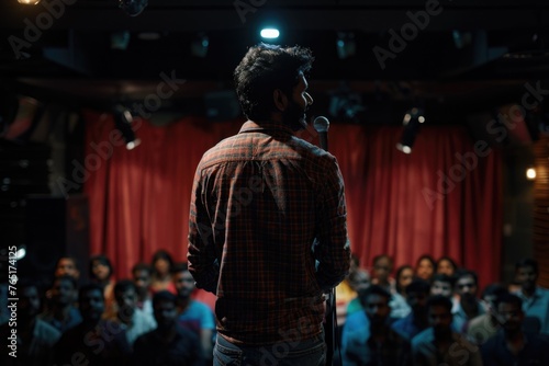 A man standing in front of a crowd, suitable for business concepts