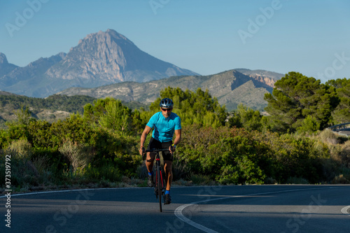 alicante, cycling, climbing, people, riding, summer, adult, adults only, adventure, bicycle, color image, determination, effort, endurance, exercising, freedom, full-length, blue color, headwear, healthy lifestyle, hill, horizontal, journey, avocation, lifestyle, motion, mountain, mountain chain, nature, one person, outdoors, photo, recreational pursuit, road, rural scene, spain, sport, sunny, vitality, valencia, white, outdoor recreation, sky, recreation