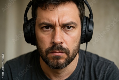 earphones, man, goggles, beard, eye, shirt, background, sharpened, concentration, productivity, work, study, music, audio, sound