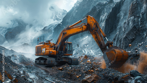 a mega excavator digging a hole into the side of a mountain,generative ai