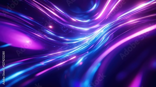 A mesmerizing abstract image featuring flowing lines of vibrant purple and blue light. This dynamic composition evokes a sense of movement and energy, perfect for digital designs.