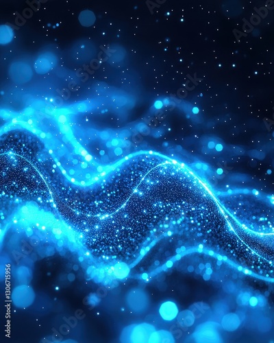 A mesmerizing close-up of a vibrant blue wave, its surface glistening with sparkling lights that reflect sunlight, creating a magical, shimmering effect reminiscent of a tropical paradise.