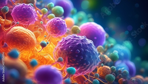 A microscopic view of cells interacting within a living organism.