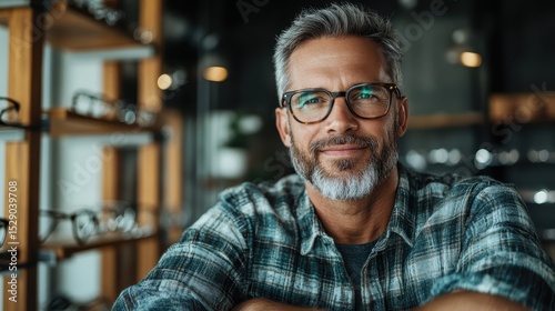 man, eyeglass, style, confidence, smiling, beard, goggles, age, store, portrait, eyewear, fashion, modern, aesthetic, personality, sophistication, shop, retail, trendy, life events, mature, emotion, visual, design, lifestyle, brand, contemporary, quality, stylish, charme, approachable, friendly, fashionable, expression, connection, local, cool, eyecare, studio, neutral, atmosphere