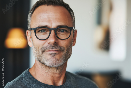 A middle-aged man with glasses looks straight ahead with a slight smile