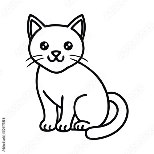 A minimalist black and white cartoon cat with large eyes and a simple outline. cat logo and icon