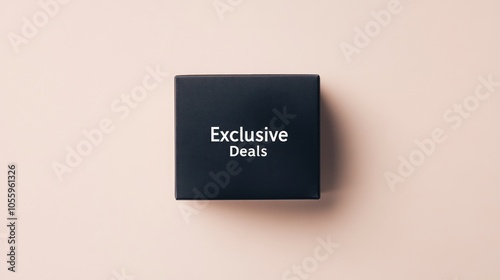 A minimalist black box showcases the text Exclusive Deals in bold white lettering. It is perfectly centered on a soft cream background creating a clean and simple promotional look