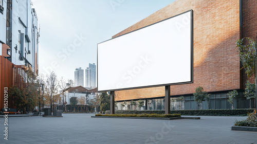 A minimalist blank advertising billboard mockup in a quiet urban area, surrounded by modern architecture and free from crowds.