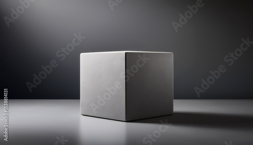 a minimalist concrete cube placed on a smooth grey background with soft lighting portraying simplicity and solidity this is an empty space and copy space mockup