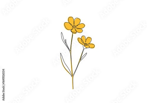 flower, yellow, minimalist, illustration, outline, white background, floral, drawing, botanical, simple, nature, design, art, isolated, plant, graphic, vignetting, single line, buttercup, line art, artwork, decorative, element, blooming, blossom, stem, leaf, elegant, modern, hand-drawn, vector, clip art, icon, symbol, spring, summer, botany, wildflower, garden, organic, natural, monochrome, minimal, doodle