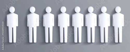 A minimalist representation of eight figurines standing in a row, symbolizing unity and diversity in a modern setting.