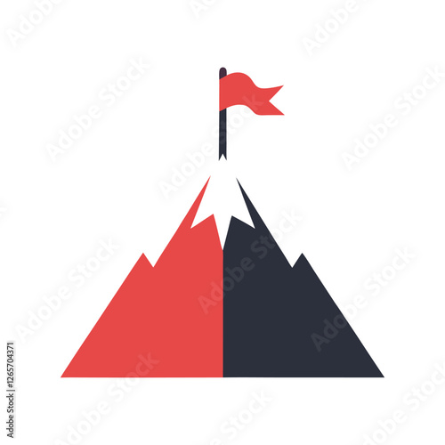 A minimalist vector of a mountain peak with a flag planted on top, symbolizing achievement and leadership