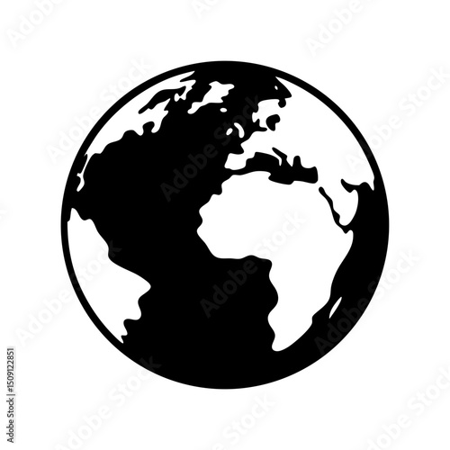 earth, globe, earth, planet, america, africa, continent, geography, illustration, monochrome, black-and-white, simple, graphic, icon, global, international, outline, contour, cartography, land, country, terrestrial, sphere, vector, design, artistic, art, space, travel, exploration, education, science, environmental, awareness, nature, climate