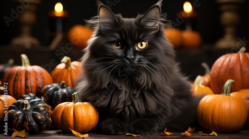 cat, pumpkin, animal, halloween, cucurbit, gourd, squash, vegetable, indoor, cosy, autumn, harvest, festive, whimsical, felino, playful, orange, black, curious, seasonal, domestic, companion, contemplative, carved, sitting, fluffy, traditional, rustic, enchanting, magical, decorative, skittish, vibrant, adorable, nostalgic, background, abstract, pumpkin