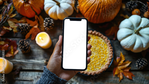 culture, phone, app, pumpkin pie, pumpkin, holiday, thanksgiving, tradition, thank you, candle, hand, woman, display, screen, topview, copy space, closeup, celebration, event, october, cone, maple leaf, apple, dinner, delicious, food, invitation, history, canada, us, phone, smart, message, connection, cyberspace, mobile, smartphone, mobile phone, device, blank, communication, technology, empty, holding, white, digital, table