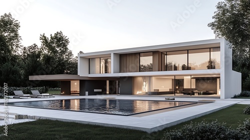 A modern and elegant house with a swimming pool