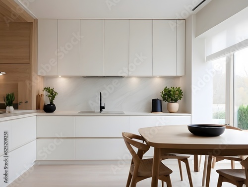 A modern and minimal kitchen interior with table, interior design, kitchen design, interior kitchen design