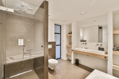 room, interior, bathroom, home, furniture, house, privies, mirror, sink, bathtub, modern, floor, apartment, decor, tile, table, kitchen, luxury, lamp, inside, architecture, design, window, wood, indoor, sofa, light, residential, clean, washbasin, shower, estate, cabinet, comfortable, basin, living, wall, bathe, glasses, chair